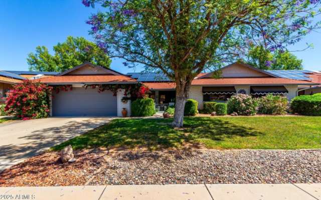 PAID SOLAR! Charming and Rarely Available Gemini home in Sun City West. offering a bright and airy atmosphere. Featuring new carpeting, 3 skylights, 2 bay windows, and ceiling fans, this home is filled with natural light and comfort. The kitchen and utility area open up to an expanded patio, perfectly situated on a peaceful greenbelt' 'ideal for relaxing or entertaining outdoors. Living in Sun City West means more than just owning a home' 'it's a lifestyle. Residents enjoy access to world-class amenities including championship golf courses, vibrant pickleball courts, bowling alleys, multiple pools, and recreation centers that support a healthy and active way of life! Conveniently located near shopping, restaurants, banks, doctors Fry's, and Safeway. Enjoy a True Arizona Lifestyle