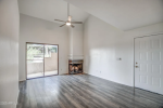 Enter to find living room w/vaulted ceilings flooded with natural light. The living room offers a cozy woodburning fireplace & open layout between kitchen, dining and living. Enjoy cooking & entertaining w/kitchen featuring waterfall quartz countertop & stainless steel appliances. Guest bath is a full bathroom. Inside stack laundry included. Step outside to not one, but 2private patios off bedrooms-ideal for morning coffee or evening unwinding. Up the stairs to the huge primary suite w/walk-in closet & a full bath. Stay cool year-round w/brand-new A/C unit & enjoy the comfort of ceiling fans throughout. Located just steps from scenic Stone Creek walking paths & Golf Course. Community pool, BBQs, fitness ctr & assigned parking
