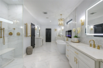 Nestled on a quiet cul-de-sac in the highly sought-after, guard-gated community of Twin Lakes, this exceptional lake-view residence has been thoughtfully modernized with designer finishes throughout and is truly move-in ready. A crisp white stucco exterior, lush landscaping, and elegant double wrought-iron entry doors create striking curb appeal and a warm welcome. Inside, light-filled interiors feature an open-concept kitchen seamlessly flowing into a spacious family room, while separate formal living and dining areas provide ideal spaces for entertaining. The first-floor primary suite offers privacy and comfort, highlighted by a recently renovated, spa-inspired bathroom. Upstairs, all bathrooms have been stylishly updated, and plush new carpet enhances the secondary bedrooms and game game room. Step outside to a private backyard retreat showcasing an extended covered patio, Travertine decking, and an outdoor kitchen. Completing the home is a 3-car garage with built-in cabinetry.