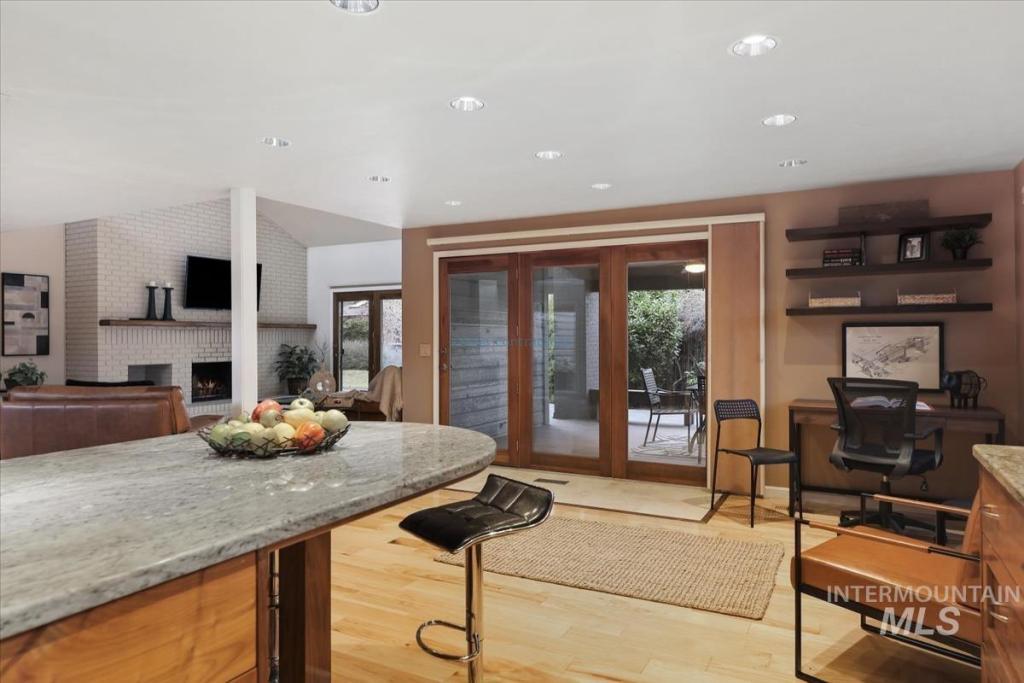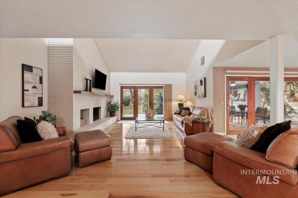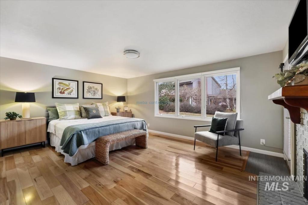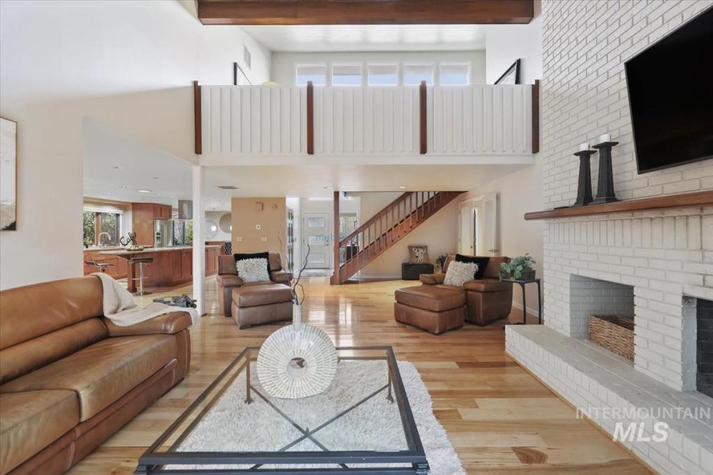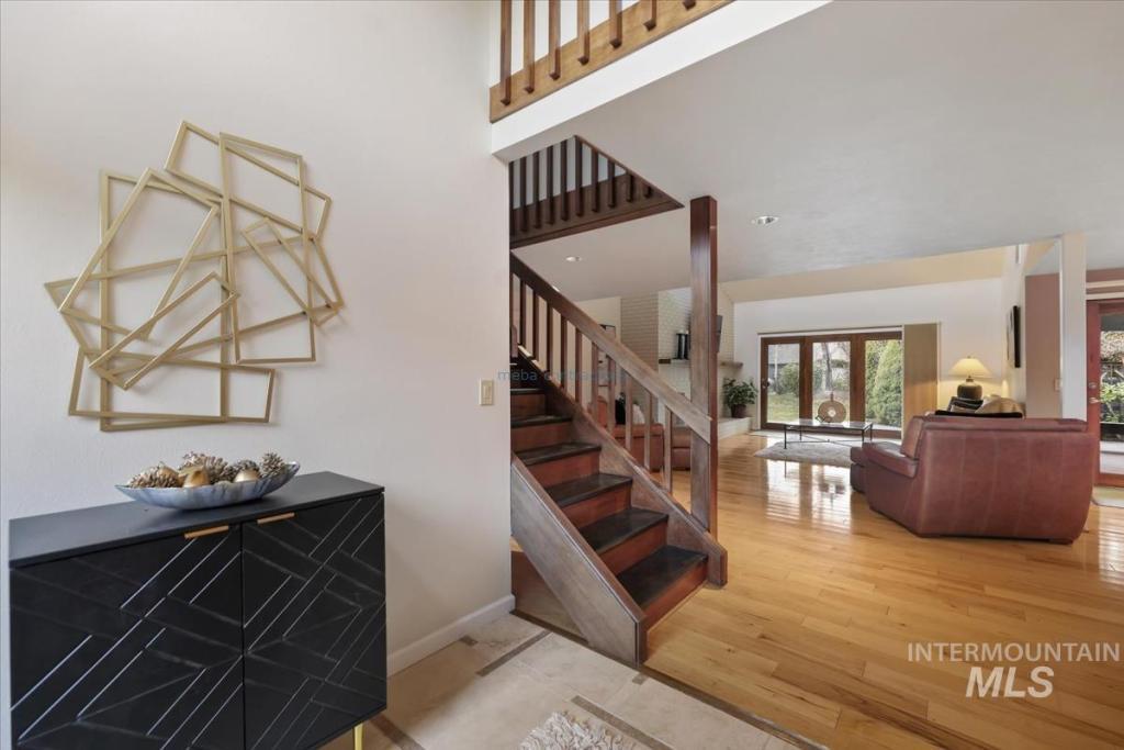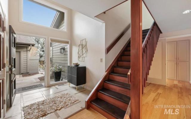 Discover timeless elegance in this stunning mid-century modern-inspired home, perfectly blending clean lines, thoughtful design, and effortless indoor-outdoor flow. Nestled in River Run Sub, one of Boise's most coveted neighborhoods, this gem offers the rare combination of serene privacy and unbeatable convenience. From the unique front courtyard, step inside to find souring vaulted ceilings & light-filled layout with expansive windows, framing lush views & sleek architectural. Main floor living offers spacious master bedroom with professionally designed master bath, including walk-in shower, soaking tub, and walk in closet. 2 additional large bedrooms & renovated 2nd bath on main level. Open Concept consist of voluminous great room with floor to ceiling brick fireplace. Kitchen offers high end appliances and finishes. Elongated island allows for numerous uses and perfect for entertaining. Multiple accesses to the covered patio and yearlong outdoor living. Upstairs bonus is a flex space adaptable for your needs. The home offers a fun blend of style and function. River Run has a community clubhouse, pool, tennis courts, and walking paths. Easy access to Boise River, Greenbelt, Parks, Shopping at Bown Crossing, BSU & DT Boise.