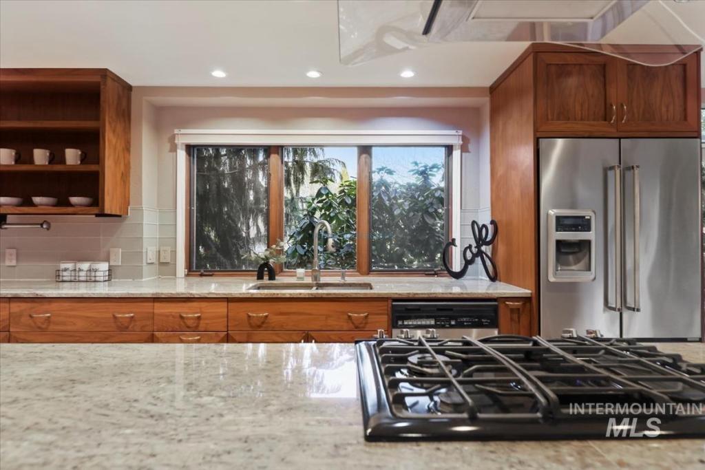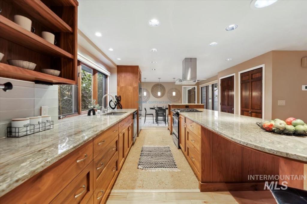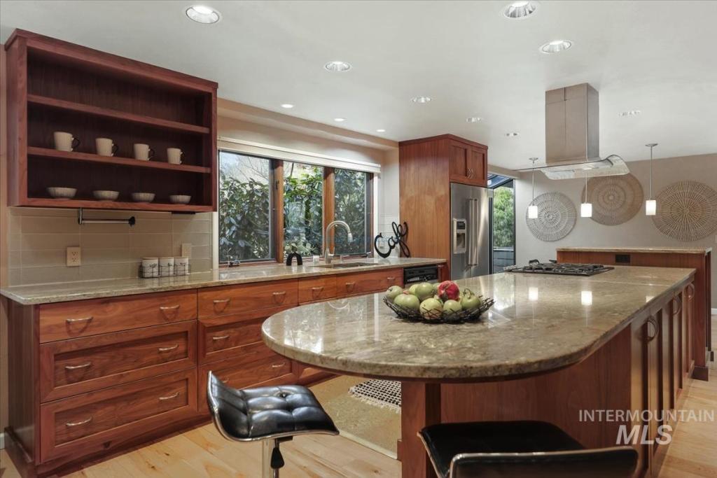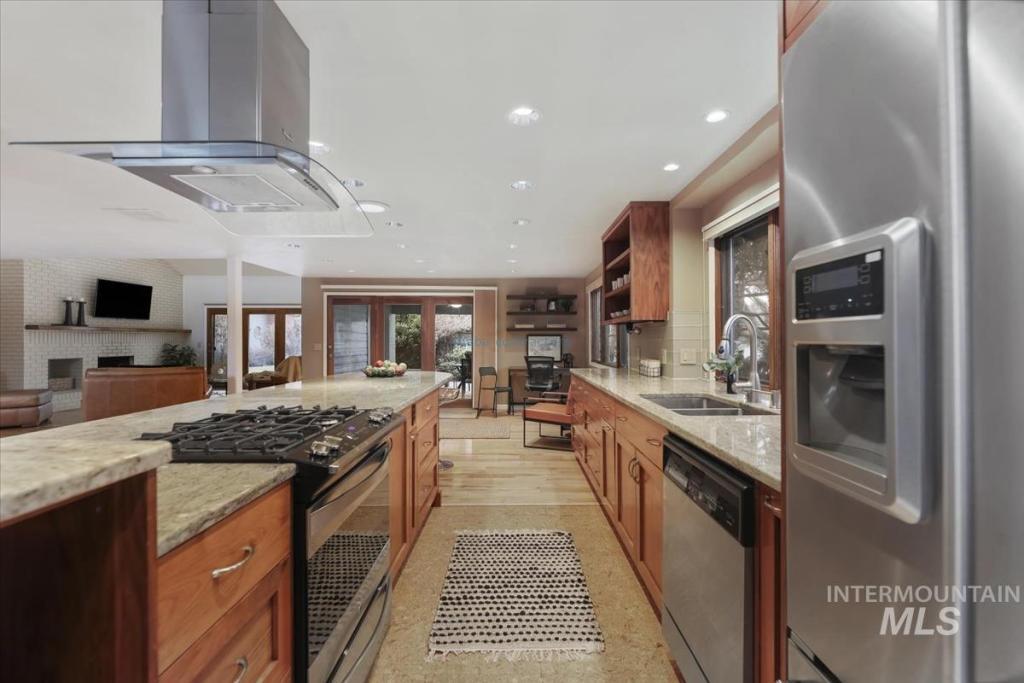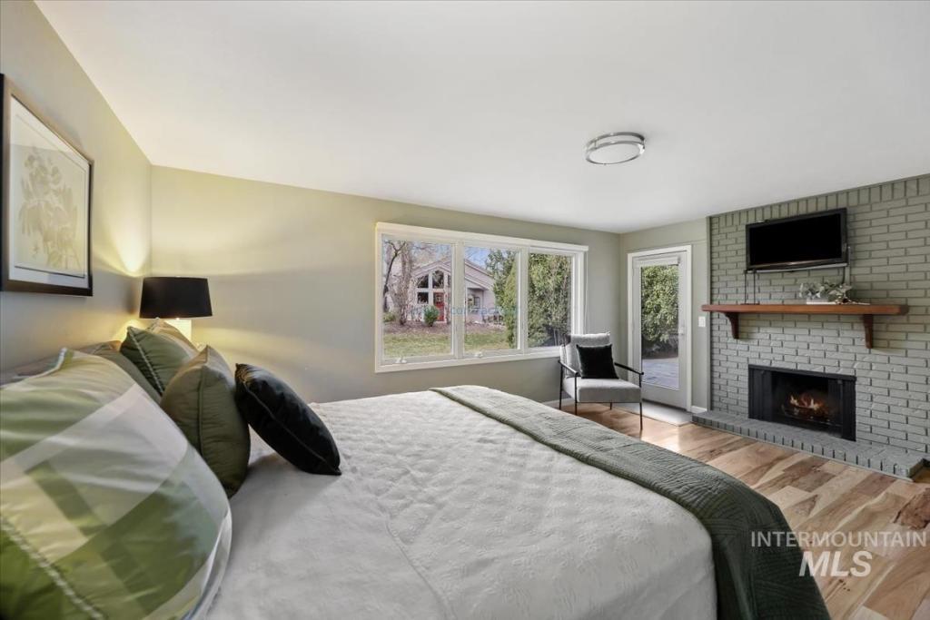 Discover timeless elegance in this stunning mid-century modern-inspired home, perfectly blending clean lines, thoughtful design, and effortless indoor-outdoor flow. Nestled in River Run Sub, one of Boise's most coveted neighborhoods, this gem offers the rare combination of serene privacy and unbeatable convenience. From the unique front courtyard, step inside to find souring vaulted ceilings & light-filled layout with expansive windows, framing lush views & sleek architectural. Main floor living offers spacious master bedroom with professionally designed master bath, including walk-in shower, soaking tub, and walk in closet. 2 additional large bedrooms & renovated 2nd bath on main level. Open Concept consist of voluminous great room with floor to ceiling brick fireplace. Kitchen offers high end appliances and finishes. Elongated island allows for numerous uses and perfect for entertaining. Multiple accesses to the covered patio and yearlong outdoor living. Upstairs bonus is a flex space adaptable for your needs. The home offers a fun blend of style and function. River Run has a community clubhouse, pool, tennis courts, and walking paths. Easy access to Boise River, Greenbelt, Parks, Shopping at Bown Crossing, BSU & DT Boise.