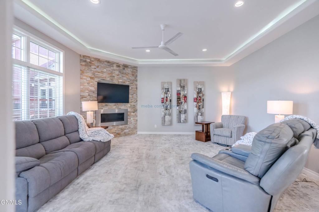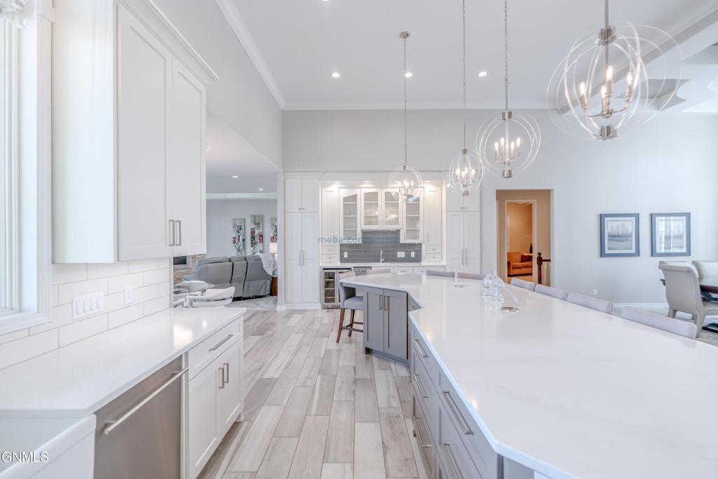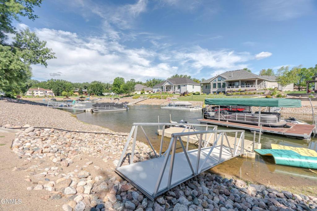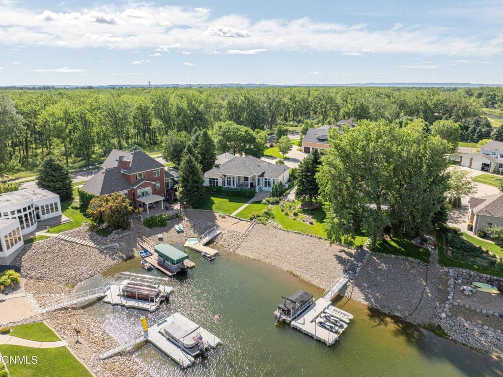AMAZING WATERFRONT 5 bedroom 4 bath ranch style home located on a cul-de-sac in SOUTHPORT. Beautiful RECENTLY UPDATED home with a LUXURIOUS & SPACIOUS floor plan including high 14 foot tall ceilings and 8 foot doors on the main. New shingles in October 2024. There are water views from nearly every room on the main floor. You will be captivated with the grand and inviting entry and updates to the kitchen, dinning and great room. The gourmet kitchen features high-quality upgrades including: stainless steel appliances, white quartz countertops, gas stove, beautiful designer pendants over the huge island great for entertaining family and friends. The main floor has 2768 sq ft with 3 bedrooms, an office, 3 full bathrooms, both informal and formal dining, great room and laundry. There is another 2768 sq ft of finished living space in the lower level including 2 family rooms, 2 bedrooms, a pool table room, full bathroom plus plenty of storage. Enjoy sitting on your deck overlooking the water view of the bay or jump in your boat off your private dock and head to the Missouri River. The triple garage has cabinets, epoxy flooring, heated and insulated with water. The 20 KVA generator will also be included in the sale. Call a Realtor today for your private showing!