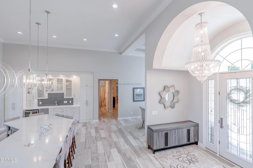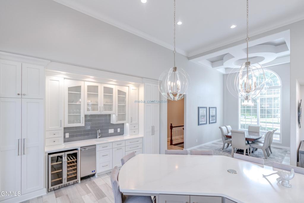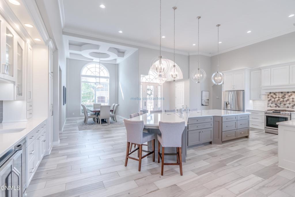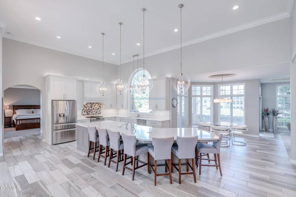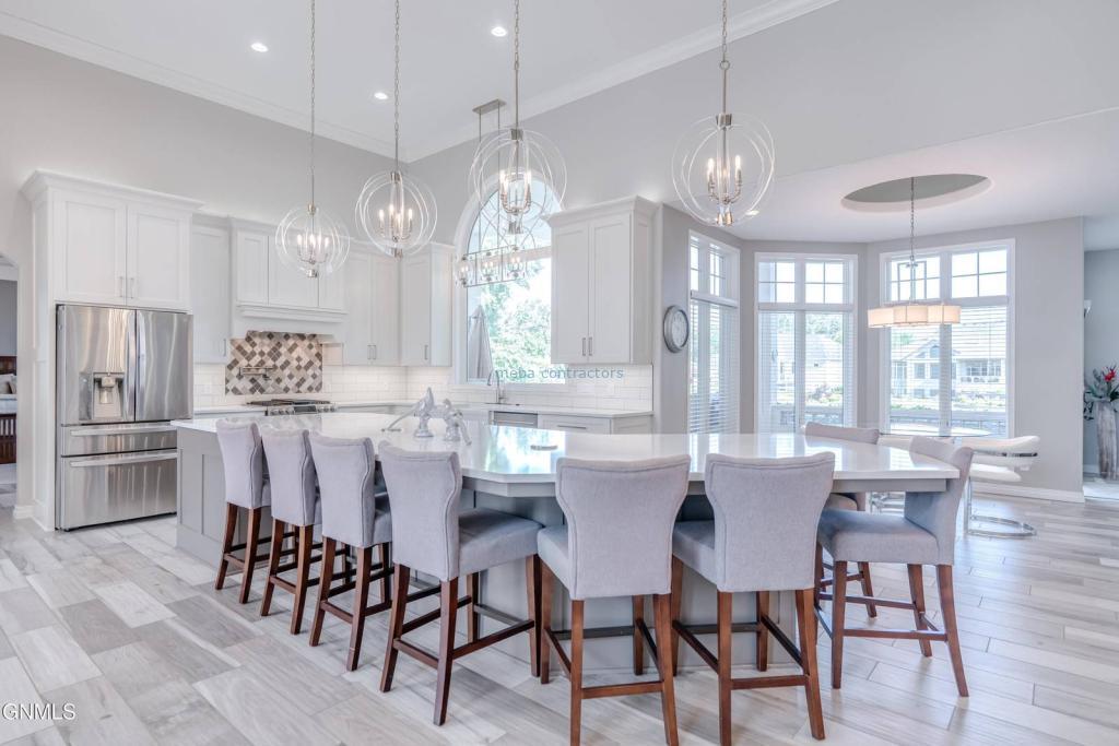 AMAZING WATERFRONT 5 bedroom 4 bath ranch style home located on a cul-de-sac in SOUTHPORT. Beautiful RECENTLY UPDATED home with a LUXURIOUS & SPACIOUS floor plan including high 14 foot tall ceilings and 8 foot doors on the main. New shingles in October 2024. There are water views from nearly every room on the main floor. You will be captivated with the grand and inviting entry and updates to the kitchen, dinning and great room. The gourmet kitchen features high-quality upgrades including: stainless steel appliances, white quartz countertops, gas stove, beautiful designer pendants over the huge island great for entertaining family and friends. The main floor has 2768 sq ft with 3 bedrooms, an office, 3 full bathrooms, both informal and formal dining, great room and laundry. There is another 2768 sq ft of finished living space in the lower level including 2 family rooms, 2 bedrooms, a pool table room, full bathroom plus plenty of storage. Enjoy sitting on your deck overlooking the water view of the bay or jump in your boat off your private dock and head to the Missouri River. The triple garage has cabinets, epoxy flooring, heated and insulated with water. The 20 KVA generator will also be included in the sale. Call a Realtor today for your private showing!