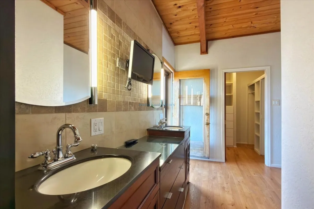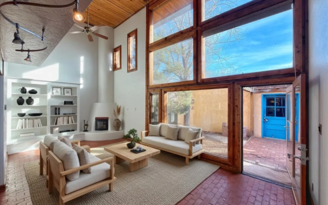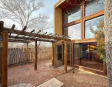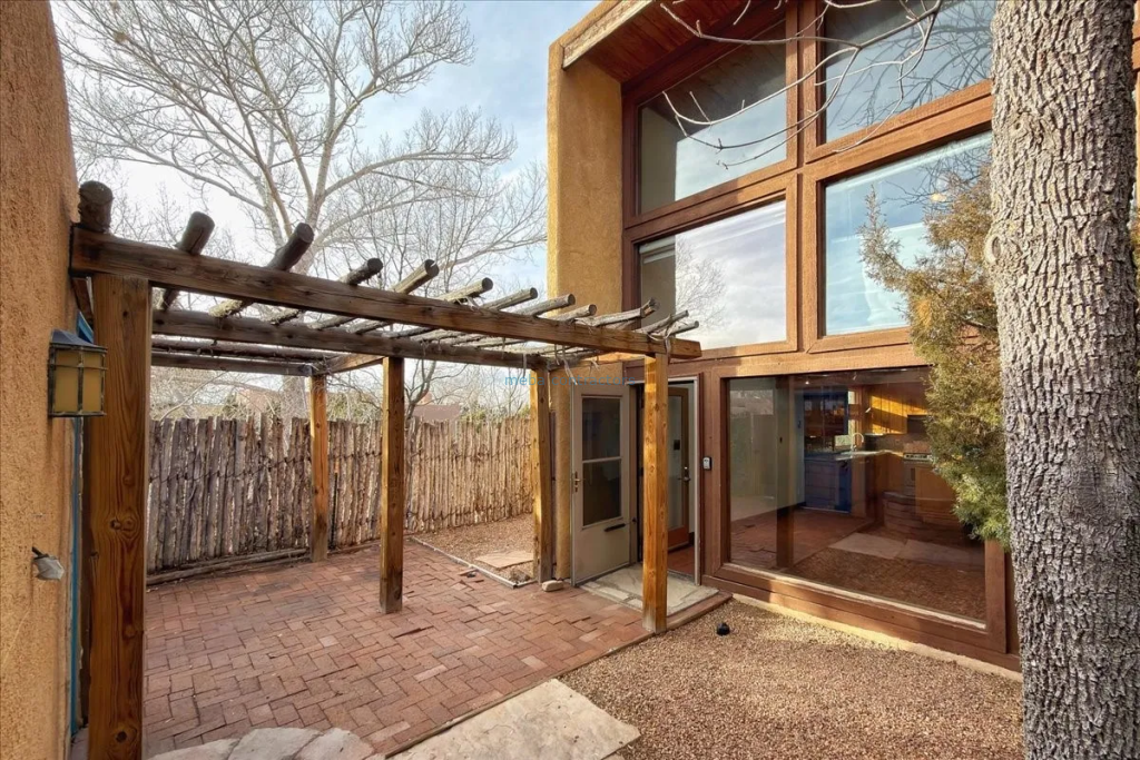 Beautifully remodeled end-unit townhome filled with warmth, light, and classic Santa Fe character. Designed with passive solar orientation, the open and inviting home is bathed in natural light, seamlessly connecting the kitchen, dining, and living areas-perfect for everyday living or entertaining. Two bedrooms and a fully remodeled bath are conveniently located on the main floor, while the private upstairs primary suite features a walk-in closet and hardwood oak flooring. Brick floors on the main level add charm and easy maintenance, complemented by wood beams and tongue-and-groove ceilings that create a timeless Southwestern feel. The thoughtfully redesigned kitchen showcases rich hardwood cabinetry, granite countertops, and a spacious island with added storage. Upgraded Andersen wood windows enhance energy efficiency while framing stunning sunset and Jemez Mountain views from the kitchen. A detached, fully finished two-car garage with built-in cabinetry provides exceptional storage and functionality. Whether you're seeking a primary residence or a Santa Fe retreat, this inviting home offers comfort, style, and unforgettable views.