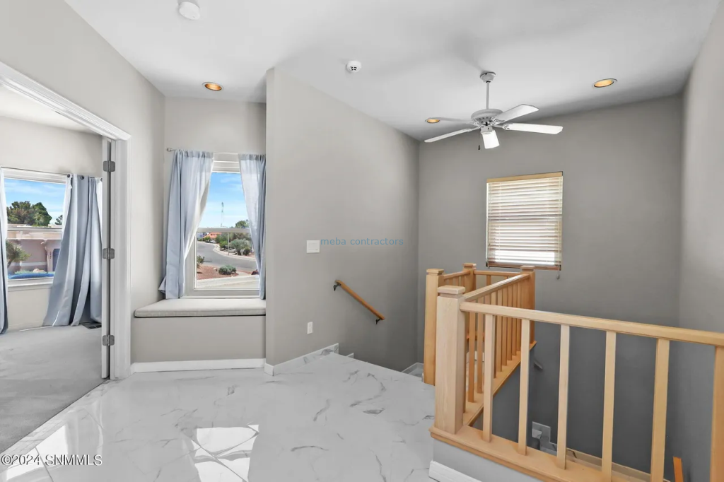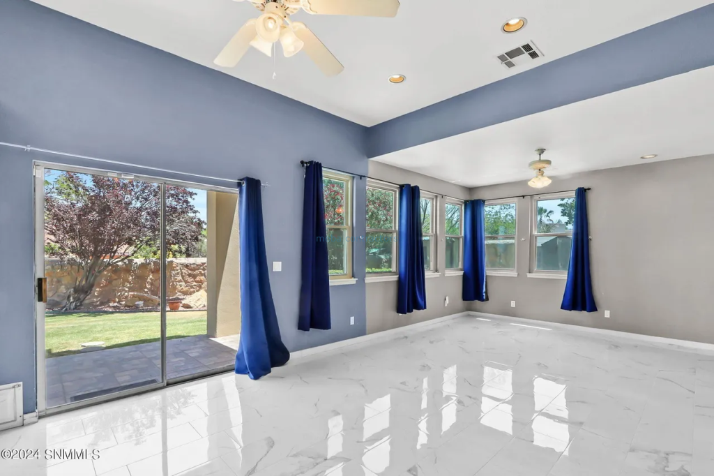 This stunning split-level home offers 3 bedrooms, 2.5 baths along with 2,351sq/ft of living space! Boasting high ceilings with abundant natural light brightening the white tile floor throughout. Nestled on a 1/4 acre lot in the Sonoma Ranch/Roadrunner area! A stylish, metal front door features privacy glass and welcomes you to a spacious family/dining room combo perfect for entertaining friends and family. The kitchen features granite countertops, built-in cooktop w/stainless range hood, and a double pantry. 2 spacious bedrooms downstairs accompanied by a full bath plus an additional 1/2bath. The master bedroom upstairs offers an open-style bathroom with walk-in shower, jetted tub, double vanity, and balcony access. 15 Solar Panels provide energy efficiency with the convenience of Refrigerated air! The front and rear tiled patios make for enjoyable outdoor living, with a beautiful backyard showcasing an in-ground pool for entertainment and relaxation. Come experience this home today!