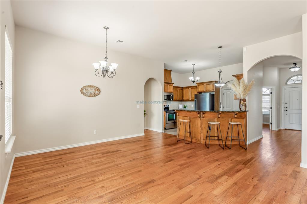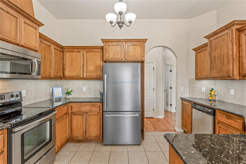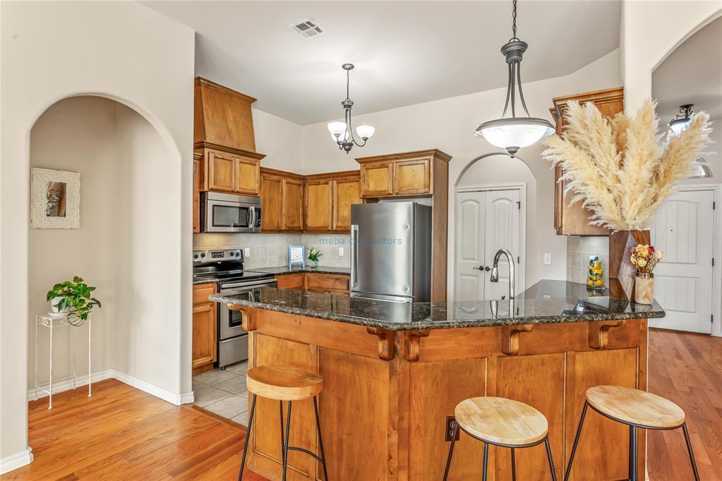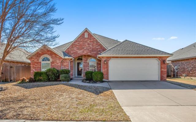 From the moment you walk in you will fall in love with this home and its fresh updates, It is now "move in ready!" This stylish home with 3 bed and 2 bath plus a naturally lit study with french doors access is located in the desirable Talavera Addition. Notice the inviting open concept living room with vaulted ceiling, ceiling fan, beautiful wood flooring, a corner brick fireplace and two oversized windows . A perfect area for family gatherings. This home has two inch window coverings and sleek styled arched walkways throughout the home that add warmth and character. The open concept living flows into the adjacent dining area that easily accommodates a full size table with extensions and has its own window flowing natural light. The kitchen features granite countertops, stainless steel appliances, ample wood cabinetry with under mount lighting and a double door pantry. An eat at the bar area seating for four offers even more space to gather with family and friends. The primary suite has a lofted ceiling with oversized windows and a ceiling fan. The primary bathroom has double vanity, oversized mirror, relaxing jetted tub with natural light through frosted panes and separate shower and throne room . This area comes with an oversized walk through closet with two doors. The two secondary well sized bedrooms with double door closets and ceiling fans are both located on the opposite side of home and share a hallway bathroom. This home has a two car garage with an in ground storm shelter and a dedicated laundry area with a wood cabinet. Step out back through a lovely glass door to a covered patio and large fenced yard for a perfect relaxing morning/evening retreat. This home is family ready and one mile from I-35 near all restaurants and shopping of SW 19th street and easy access to I-44. Come take a look at this newly refreshed home in a sought after neighborhood. Even if you have viewed this home previously, come on back and see a new look!