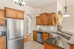 From the moment you walk in you will fall in love with this home and its fresh updates, It is now "move in ready!" This stylish home with 3 bed and 2 bath plus a naturally lit study with french doors access is located in the desirable Talavera Addition. Notice the inviting open concept living room with vaulted ceiling, ceiling fan, beautiful wood flooring, a corner brick fireplace and two oversized windows . A perfect area for family gatherings. This home has two inch window coverings and sleek styled arched walkways throughout the home that add warmth and character. The open concept living flows into the adjacent dining area that easily accommodates a full size table with extensions and has its own window flowing natural light. The kitchen features granite countertops, stainless steel appliances, ample wood cabinetry with under mount lighting and a double door pantry. An eat at the bar area seating for four offers even more space to gather with family and friends. The primary suite has a lofted ceiling with oversized windows and a ceiling fan. The primary bathroom has double vanity, oversized mirror, relaxing jetted tub with natural light through frosted panes and separate shower and throne room . This area comes with an oversized walk through closet with two doors. The two secondary well sized bedrooms with double door closets and ceiling fans are both located on the opposite side of home and share a hallway bathroom. This home has a two car garage with an in ground storm shelter and a dedicated laundry area with a wood cabinet. Step out back through a lovely glass door to a covered patio and large fenced yard for a perfect relaxing morning/evening retreat. This home is family ready and one mile from I-35 near all restaurants and shopping of SW 19th street and easy access to I-44. Come take a look at this newly refreshed home in a sought after neighborhood. Even if you have viewed this home previously, come on back and see a new look!