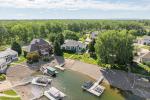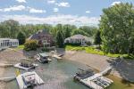 AMAZING WATERFRONT 5 bedroom 4 bath ranch style home located on a cul-de-sac in SOUTHPORT. Beautiful RECENTLY UPDATED home with a LUXURIOUS & SPACIOUS floor plan including high 14 foot tall ceilings and 8 foot doors on the main. New shingles in October 2024. There are water views from nearly every room on the main floor. You will be captivated with the grand and inviting entry and updates to the kitchen, dinning and great room. The gourmet kitchen features high-quality upgrades including: stainless steel appliances, white quartz countertops, gas stove, beautiful designer pendants over the huge island great for entertaining family and friends. The main floor has 2768 sq ft with 3 bedrooms, an office, 3 full bathrooms, both informal and formal dining, great room and laundry. There is another 2768 sq ft of finished living space in the lower level including 2 family rooms, 2 bedrooms, a pool table room, full bathroom plus plenty of storage. Enjoy sitting on your deck overlooking the water view of the bay or jump in your boat off your private dock and head to the Missouri River. The triple garage has cabinets, epoxy flooring, heated and insulated with water. The 20 KVA generator will also be included in the sale. Call a Realtor today for your private showing!