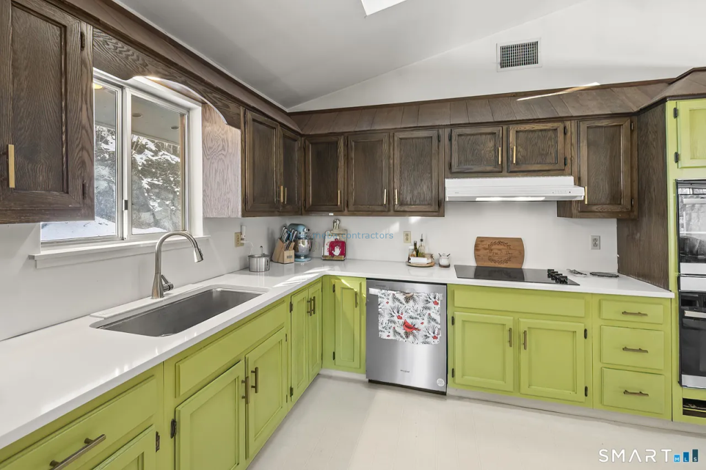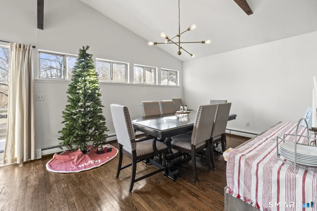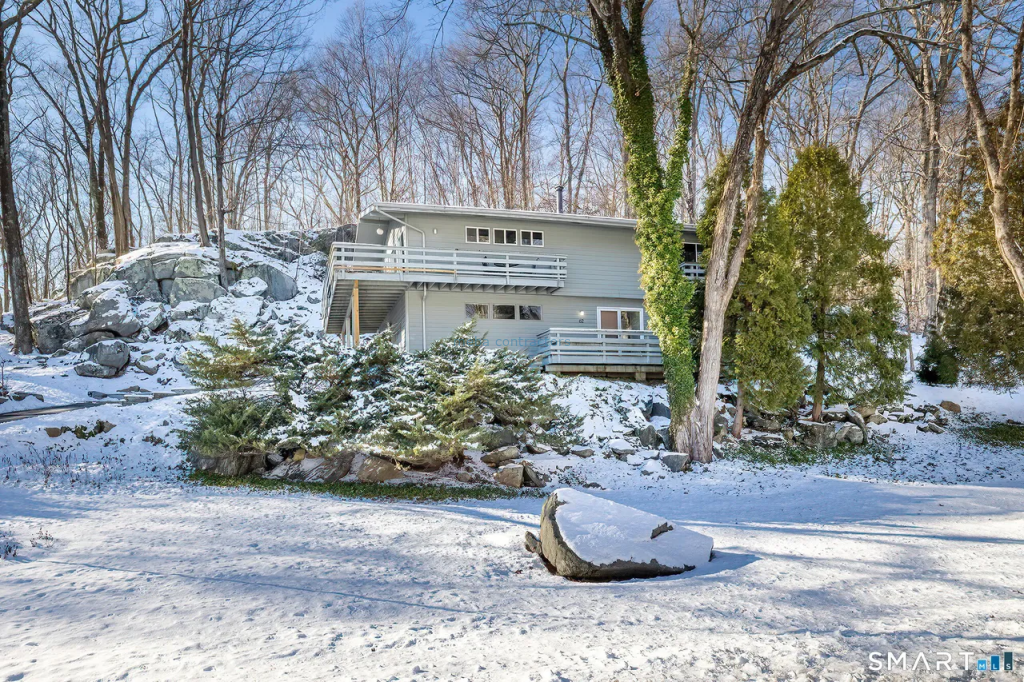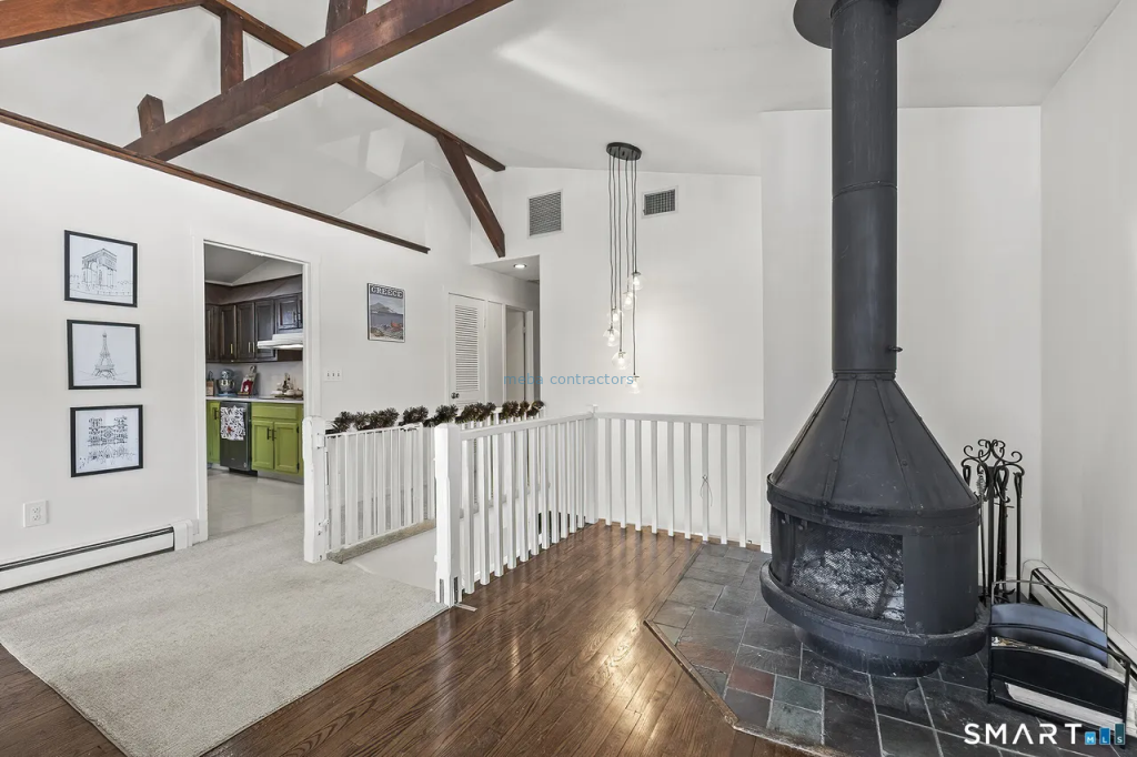 Flowing with natural light and just minutes from Bethel's vibrant downtown, this contemporary 4-bedroom, 3-full-bath home offers the perfect blend of modern style, warmth, and flexibility. At the heart of the home is a stunning great room with vaulted ceilings, exposed beams, and a wood-burning stove. It's an inviting space for everyday living or entertaining. Sliding doors throughout the home open to a wraparound deck, seamlessly connecting indoor and outdoor living and providing multiple spots to relax, dine, or enjoy the surrounding views. The main level features three bedrooms, including a primary suite with ensuite bath and an additional full hallway bathroom. Downstairs, the lower level offers exceptional versatility with a cozy den featuring a fireplace, a dedicated office, and a fourth bedroom-ideal for working from home, hosting guests seeking privacy or for multi-generational living. An attached two-car garage adds convenience, while the home's location truly shines. Enjoy everything Bethel has to offer, with its great restaurants, shops, charming, walkable downtown and easy access to a nearby train station, which gets you to Midtown Manhattan just 70 miles away. Bright, stylish, and thoughtfully laid out, this home delivers comfort, character, and commuter-friendly living in one beautiful package. Recent updates include new double oven, new cooktop, new dishwasher, new quartz countertop, new vanities in the bathrooms, grading, landscaping and more. See it today!