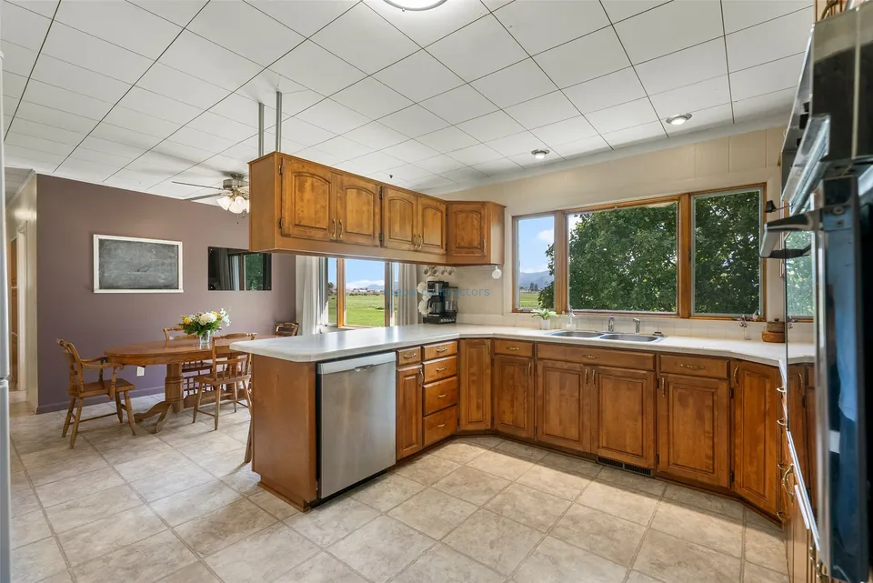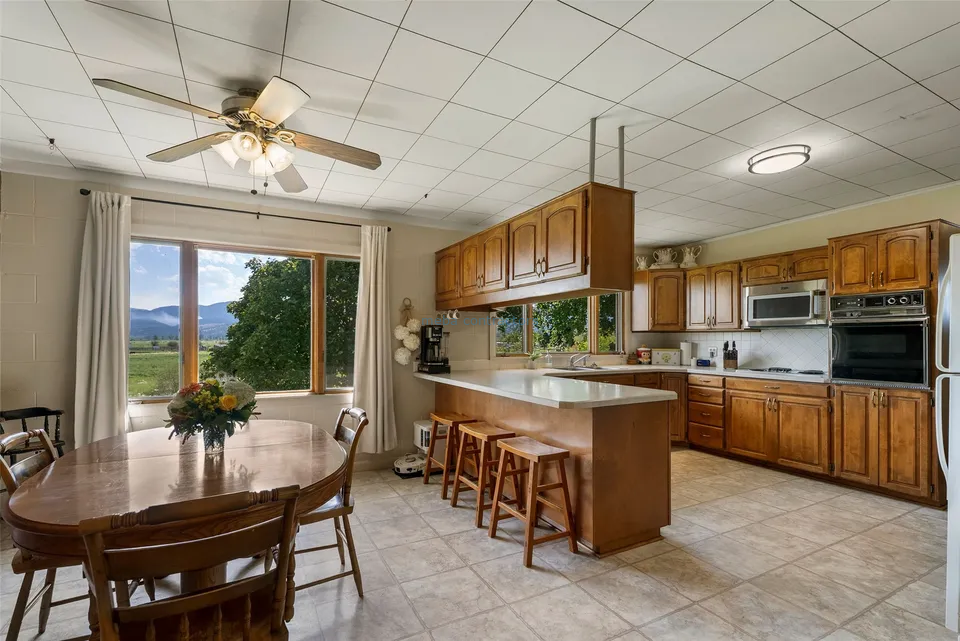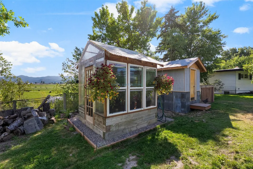 No Covenants, HOA or Zoning to limit you! This lovely one-of-a-kind, 4+ bedroom, 2 bath home is nestled on nearly an acre of beautiful green terrain, just down the road from Frenchtown School. Enjoy beautiful protected views from this lushly landscaped property, home to a variety of trees (including Maples, Willows & Aspens), a serene pond highlighted with lily pads and cattails that enjoys frequent visits from foxes, otters, and birds of every kind, making this a true nature-lover's paradise. For the homesteader or hobbyist, a custom state-of-the-art chicken coop with a solar-powered automatic door, large abundant raised garden beds, and a brand-new greenhouse provides everything you need to live more self-sufficiently. Offering 2,800 sq ft of versatile living space, this home blends classic mid-century charm with modern upgrades and abundant natural lighting throughout. The main floor features 3 bedrooms, 1.5 baths, a spacious kitchen with ample cabinet space, a laundry room, and a welcoming living room with a cozy gas fireplace. Downstairs, the fully remodeled basement offers a private entrance, full kitchen, 1 bedroom, plus a bonus room (just needs egressed!), a full bath with stackable washer & dryer, and living room with its own gas fireplace-ideal for a mother-in-law suite, guest quarters, or potential rental income. Additional updates include: New on-demand hot water heater, all new plumbing throughout, electrical upgrades, new lighting throughout, new fresh interior & exterior paint, and a new fence with multiple entry secure gates, and more!! Storage and utility have not been forgotten! In addition to the large two-car garage, there is a storage barn, several sheds, & of course...a shop with oversized door, extra-high ceiling, insulation, and woodstove heating.- Number of bedrooms: