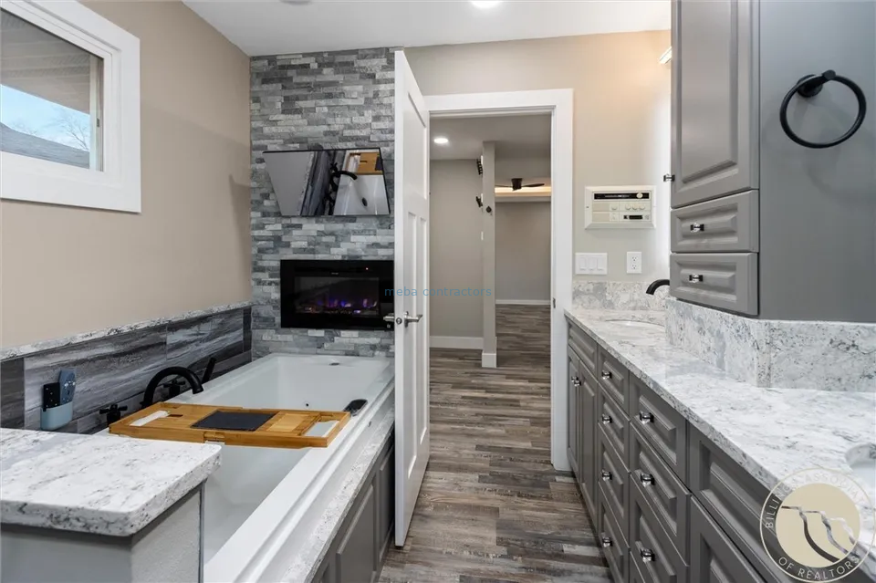 Step into this beautifully remodeled, one-of-a-kind home. Opening up to a stunning kitchen complete with 2 huge islands, newer appliances that include a smart refrigerator, double ovens, a range with a built-in pot filler, a drink fridge, and plenty of storage space. The attention to detail continues to the primary bedroom that carries through to a walk-in closet housing a stackable washer and dryer and en suite complete with walk in shower and jetted soaker tub. All of this is situated on the main floor with 2 additional bedrooms and another bathroom. In the basement you will find a family room, 2 bedrooms, an office, and a laundry room with 3 stackable laundry hookups. With 8 total bedrooms and 3 bathrooms, every surface has been thoughtfully finished while not neglecting what's behind the walls, including new plumbing and wiring throughout. See more on features List. Cameras present.- Number of bedrooms: