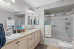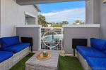 Welcome to Cabrillo at the Bay, a gated townhome community in the heart of Point Loma built in 2006, where convenience, design and lifestyle come together. This two-story townhome offers 1,227 square feet of well-planned living space above an oversized two-car tandem garage with direct access, plus a bonus room ideal for a home office or flexible storage space. The main living level is designed for easy, everyday living. Natural hardwood floors, complemented by travertine tile in the entry, kitchen, and baths, and carpeted bedrooms & stairs. The kitchen features granite countertops, stainless steel appliances that convey, and timeless wood cabinetry, opening seamlessly to the dining area with a custom built-in hutch. Step outside to the private balcony and take in unobstructed views of the pool and communityperfect for morning coffee or unwinding at the end of the day. Down the hall, you'll pass a full size washer/dryer on the way to your primary suite offering a calm retreat with ensuite bathroom - dual vanities, a glass-enclosed shower, soaking tub, and double closet areas with mirrored closet doors. The secondary bedroom is generously sized and conveniently located near the hall bath with a full tub and shower. This home is ideally positioned within the gated community and the city, offering resort-style amenities including a pool, spa, BBQ area, playground, and clubhouse, all with low HOA dues of just $265 per month. Centrally located near shopping, dining, Kaiser facilities, the Sports Arena, freeways, downtown San Diego, and the coast.