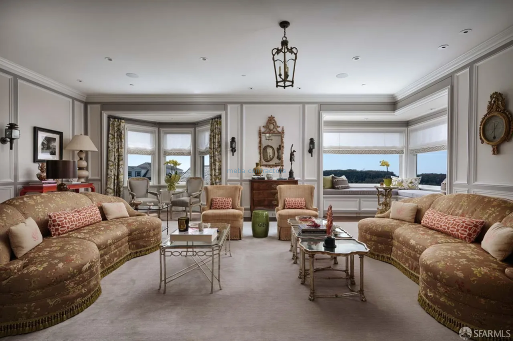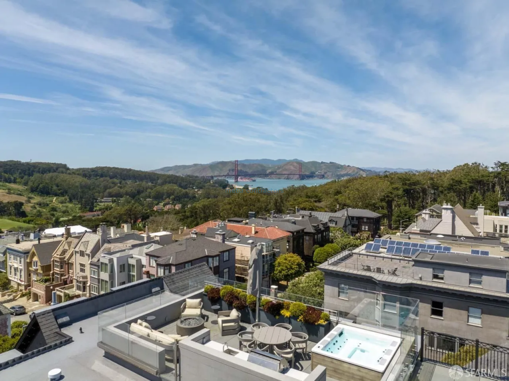 Set atop one of San Francisco's most prestigious neighborhoods, this extraordinary 26,260-square-foot Pacific Heights residence offers a rare combination of scale, elegance, and flexibility. Extensively renovated and expanded over multiple years by Butler Armsden Architects, with interiors by Jonathan Rachman, the home blends European-inspired architecture with refined modern luxury. Designed as a true residential compound, the estate offers exceptional flexibility, supporting a variety of living arrangements, live/work functionality, and large-scale entertaining. Spanning five expansive levels with elevator access, the home is centered around a European-style courtyard with fireplace, anchoring formal living and dining rooms, library, gallery, and family room. A chef's kitchen complemented by a full catering kitchen accommodates both intimate gatherings and formal events with ease. Amenities include an indoor basketball court, glass-walled gym, yoga and movement studio, spa bath, massage room, golf simulator, media room, wine lounge, and bar. A private two-bedroom guest apartment with kitchen and patio, multiple guest suites, and an additional private residence allow for independent and flexible use of space. The primary level features four luxurious suites, including a grand primary suite with fireplace, balcony, Golden Gate Bridge views, dual walk-in closets, and dual marble baths. A rooftop retreat with panoramic Golden Gate Bridge, Presidio, and city skyline views includes an outdoor kitchen, hot tub, and fire pit. Additional features include radiant heat throughout, a six car garage with EV charging, and parking for approximately 20 additional vehicles. A rare opportunity to own one of Pacific Heights' most significant private estates.