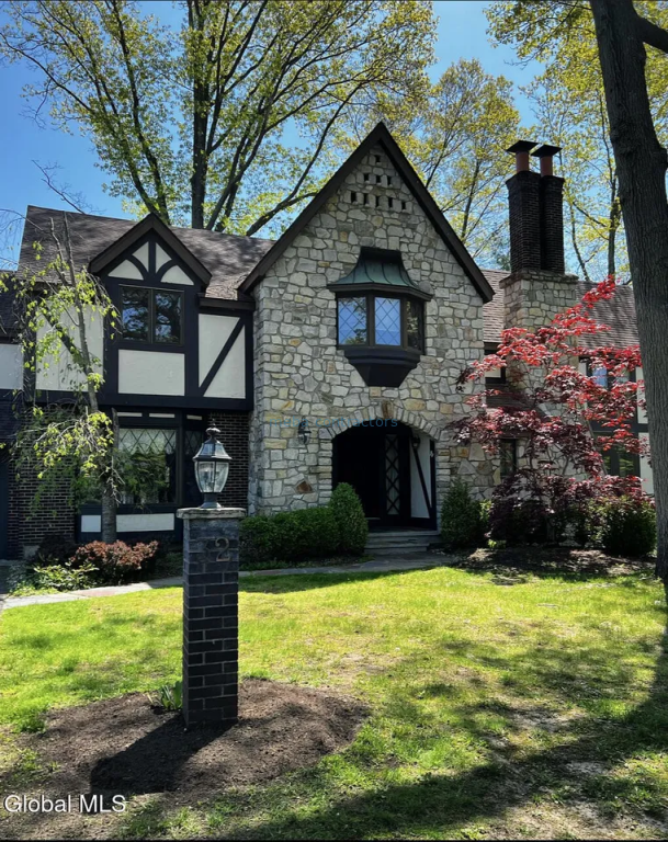 This Storybook English Tudor home in coveted Quadrini Estates has been beautifully renovated & meticulously maintained, inside and out. Step inside to experience a perfect blend of timeless elegance & modern luxury. CHEF'S DREAM KITCHEN. Sun-drenched, intuitively designed, glass-paned cabinets with interior & under-cabinet lighting, GE Monogram stainless appliances, 48'' dual-fuel range, pot filler, large island, quartz counters, open wood shelves, new cabinetry, pantries with pull-out shelves, a glass-paned pocket door & beautiful views through new picture windows. PRIMARY SUITE RETREAT: Spacious bedroom with large sitting area, custom walk-in closet, heated bathroom floor, deep spa tub, glass-enclosed shower and French doors. Bright secondary bedrooms with large walk-in closets, new paint and carpeting. FLEXIBLE SPACES: 4th bedroom converted to create expanded primary suite (easily reverted), home office/den with bay windows and French doors, and a spiral staircase leading to a library loft. Finished basement includes separate spaces for office, media/game rooms and storage. OUTDOOR OASIS: Fenced yard with views of wooded forever wild space and enclosed side yard for pets or play. 3-SEASON PORCH: French door access from dining room, skylights and deck access for year-round enjoyment. NEW: Custom Hunter Douglas window treatments, recessed lighting, front door with sidelights and a hard-wired doorbell camera, new and refinished hardwood floors, bedroom carpeting, lighting fixtures, 2nd-floor laundry room and security system. ADDITIONAL HIGHLIGHTS: 2 fireplaces, walk-in bedroom and foyer coat closets, ceiling fan lights in bedrooms, dimmer switches, timer fans in bathrooms and a wall safe for valuables. LOCATION: within minutes of The Academy of Holy Names, churches, synagogues, hospitals, banks, groceries and restaurants. Bright, clean, and move-in ready! This chance to settle in Quadrini Estates is rare. Don't wait to make this storybook Tudor your home!