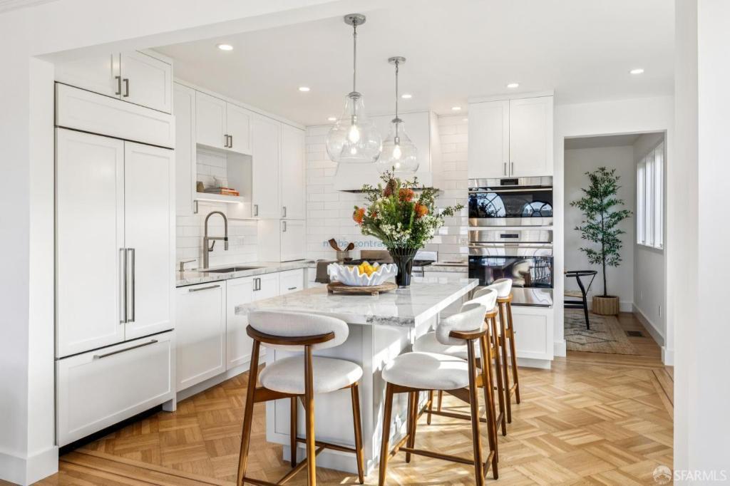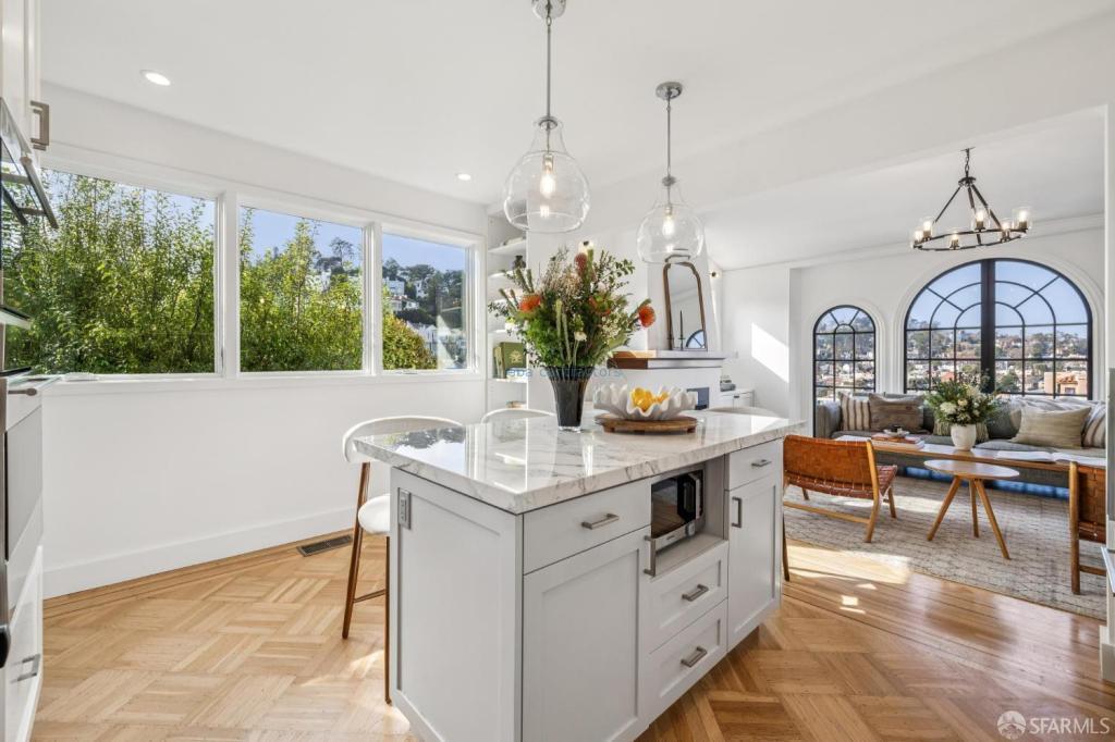 Refined 1929 elegance meets masterful modern refinement in this detached beautifully reimagined Forest Hill Extension residence. Meticulously renovated, the home offers four bedrooms and three bathrooms with generous private spaces, custom built-ins, exceptional storage, and curated finishes throughout. The entrance level features original hardwood floors, classic detailing, and expansive arched windows framing sweeping hill views and warm afternoon light. A thoughtfully designed kitchen with custom cabinetry, premium appliances, and an elegant breakfast island anchors the open-concept great room, flowing seamlessly into the living area. A formal dining room provides a refined setting for entertaining. The expanded lower level includes a spacious family room, two additional bedrooms, a new full bath, and a wet bar, ideal for guests, entertaining, or work-from-home living. Outdoors, the landscaped rear garden offers flagstone detailing, automated irrigation and lighting, and a sculptural fire feature for year-round enjoyment.A rare two-car garage provides ample storage and EV-ready power. Major upgrades include all-new electrical and panel, new plumbing connected to the city, seismic improvements, tankless water heater, and new HVAC with air conditioning. Ideally located near Miraloma Park Shopping Center, St. Brendan School & Church, Forest Hill Muni, and minutes to West Portal Village.
