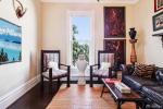 I often say that a Victorian or Edwardian person would feel completely at home and be able to navigate easily in the NOPA, Cole Valley, or the Haight because these areas weren't destroyed during the 1906 earthquake and fire. Huge numbers of refugees left Nob Hill and the old sections of the city for the western addition, where all the houses still stood untouched post-quake. 560 Lyon St was built in the midst of this western expansion, in the height of the Queen Anne stylistic period. Wooden shipbuilding was giving way to iron ships, so the hundreds of carpenters who had been shipbuilders were at a loss until they started decorating San Francisco's Victorians. 560 Lyon and 1575 Fulton look largely as they did in 1894 when they were built. It was common for merchants to have a store on street level and live above in a residential unit. The water records indicate that the original configuration consisted of two stores and two residences. Today, this sale includes a two-story residential unit and an original storefront. The house is large and imposing and is the subject of books, art, and postcards. 560 Lyon has most of its original details: fireplaces, wood floors, beefy wood moldings, tall ceilings, imposing plaster crown moldings, and ceiling medallions. Interior designers own the house, so it is bedecked with lush wallpapers, saturated colors, and bespoke finishes. The kitchen has been designed around the golden triangle for comfort and ease of cooking. Luxury stainless steel appliances, including a wine cooler and pot filler, leathered granite countertops, and a separate eat-in space lead to doors to the decks. Rounding out the first floor (entertaining floor) there is a double parlour living room, a library, a media room or guest room and a half bath. The second floor has a Moroccan-style primary bedroom with views of St. Ignasius, Lone Mountain, USF, UCSF, and Sutro Tower. The turret is also here, and a full bath with a side-by-side laundry. Until recently, 1575 Fulton was an art gallery where an artist sold art from the space and slept in the loft. There are two decks with views of the neighborhood and downtown. They are sheltered from west winds and ocean fog. The parking is diagonal across the street, and an electric charger can be added for a fee. $300 a month for the spot and the seller pays the first year's rent.